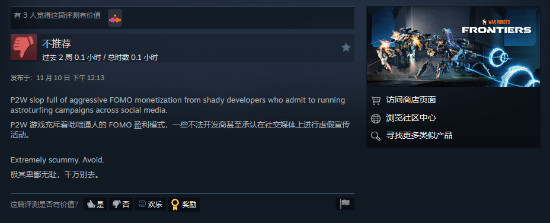 值得注意的是,涉事游戏《War Robots: Frontiers》目前似乎未受到明显影响,其在Steam平台的评价仍保持“褒贬不一”。