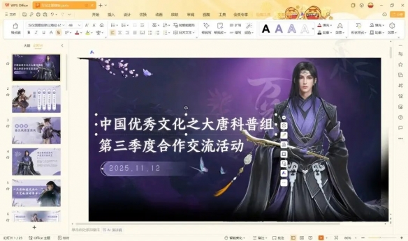 一直以来,WPS不断贴合年轻人的需求进行创新。除联名活动的发布外,WPS与《剑网3》还共同发起了PPT创作有奖征集,自2025年11月12日起至11月17日,每天抽取在小红书分享用《剑网3》联名模板创作PPT的用户,赠送黄鸡大笑包、联动冰箱贴及WPS大会员周卡。