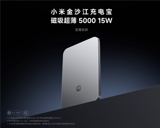 这款充电宝应用了小米手机同款的金沙江电池技术,凭借其高能量密度在充电宝领域形成显著优势。产品厚度仅6mm,却容纳了5000mAh电量,支持磁吸无线充电,是目前同类产品中最薄的型号之一。