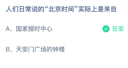 人们日常说的"北京时间"实际上是来自?支付宝小鸡课堂开课啦!每天花一分钟答题赚饲料,喂喂小鸡就能贡献爱心啦!轻松又意义十足!2025年12月29日蚂蚁庄园的小鸡课堂题目正确答案是【国家授时中心】,人们日常说的"北京时间"实际上是来自国家授时中心。