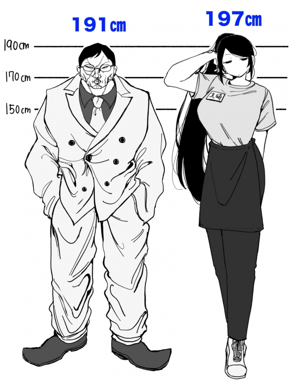 日本漫画家犭山あむ,最近在社群上分享了一项让自己感到震惊的发现。他笔下的网路漫画《大崎さんと小森さん》(暂译,大崎同学与小森同学),是一部描述身高差超过 50 公分的百合互动作品。其中一位女主角“大崎”拥有相当高挑的身材。但在重新审视设定后,作者意识到这名主角的身高,居然比《刃牙》系列的“花山薰”还要高。
