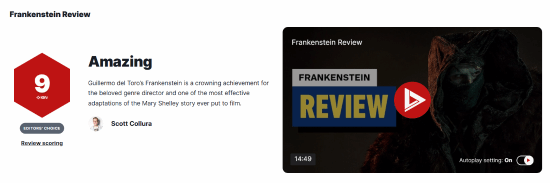 今日,IGN为吉尔莫·德尔·托罗执导的科幻新片打出9分高分,影评人认为该片不仅是这位备受喜爱的类型片导演的集大成之作,更堪称电影史上对玛丽·雪莱原著最强有力的改编之一。
