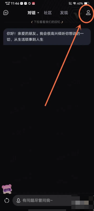 1、打开文心一言APP首页,点击右上角“人像”图标。