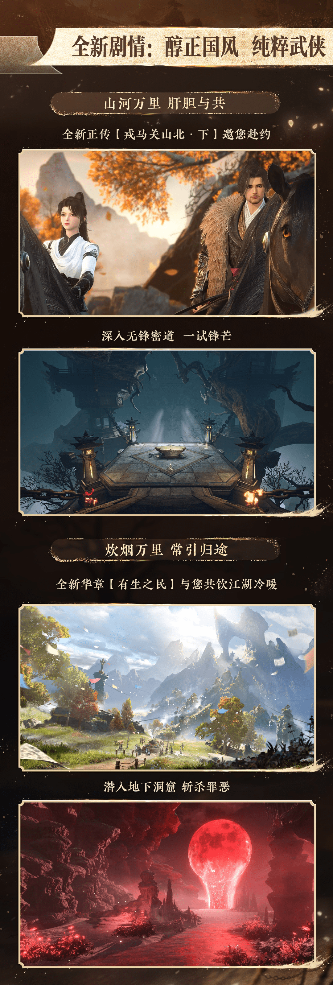 而除了新外观外,新版本还将从新剧情、新副本、新玩法等多方面来为您打造一次非常特别的“国风企划”。下面请看详细介绍: