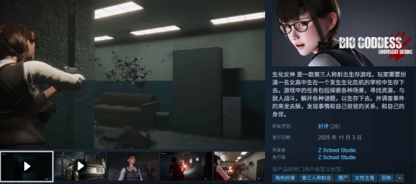 近日,美少女恐怖射击游戏《生化女神:末日开端》在Steam平台开启抢先体验,原价89.99元,首周9折售价80.99元,本作支持简体中文。