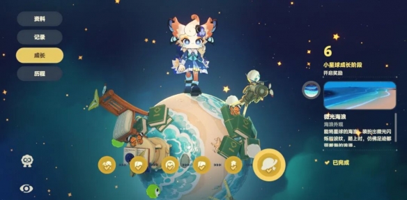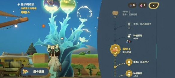 只不过《星布谷地》整个家园建造玩法里最独特的还是“露卡”系统。玩家所在星球都会种有一棵“星球树”,只要完成指定任务就能换取“露卡瓶”奖励,用其浇灌“星球树”就能解锁星球全新生态地貌,还能获得让草地布满星星图案等“露卡”装扮星球。
