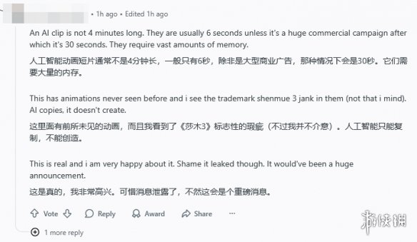那么,在你看来,这段视频究竟是AI合成的产物,还是确为《莎木4》的真实预告呢?