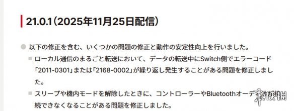 以下是Switch 2系统更新21.0.1版本的主要内容: