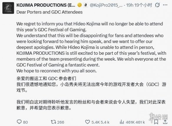 今日,小岛工作室发布通知,小岛秀夫将无法出席今年的游戏开发者大会(GDC),对于小岛粉丝来说,这简直是个“惊天噩耗”!