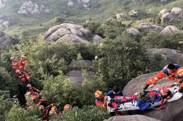 据福建消防消息,近日,漳州市消防救援部门接到报警:古雷沙西镇一名男子在山上采药时不慎失足,从悬崖坠落,被卡在半山腰一处进退不得的位置。