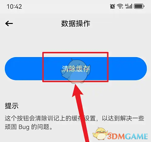3、进入数据操作界面,点击【清除缓存】。