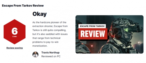 《逃离塔科夫》已于11月15日正式登陆Steam平台,曾因性能问题遭遇不少玩家的指责。IGN今日发布了本作的评测文章,为游戏打出6分的成绩。
