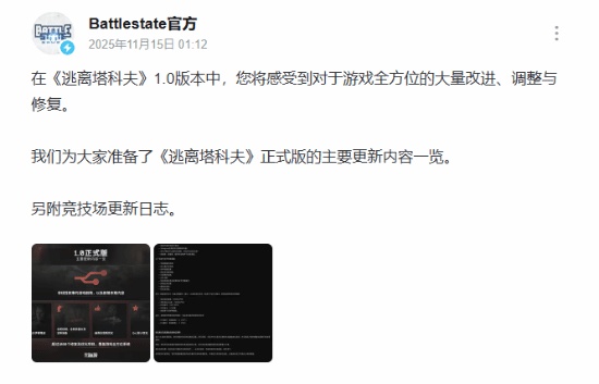 历经多年测试,硬核生存射击游戏《 逃离塔科夫 》于11月15日正式推出1.0完整版本。官方同步公开了正式版更新详情与竞技场模式日志,标志着游戏进入全新阶段。