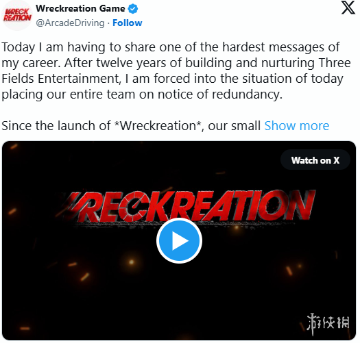 Three Fields Entertainment于2022年公布《破坏创造王》,这款主打自定义内容的开放世界竞速游戏于今年10月登陆PC、PlayStation和Xbox平台。工作室首席执行官菲奥娜·斯佩里在社交媒体发布的长文中痛心表示:"这对我们所有人来说都是心碎的时刻",但希望通过公开表态能"让有识之士看到这款游戏的潜力"。