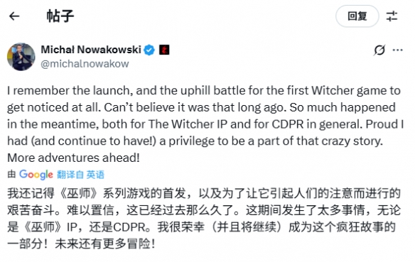 Nowakowski强调:“《巫师》不仅是游戏,更是波兰文化的象征。未来,我们将继续讲述杰洛特与希里的故事,让新一代玩家体验‘猎魔人’的冒险。”