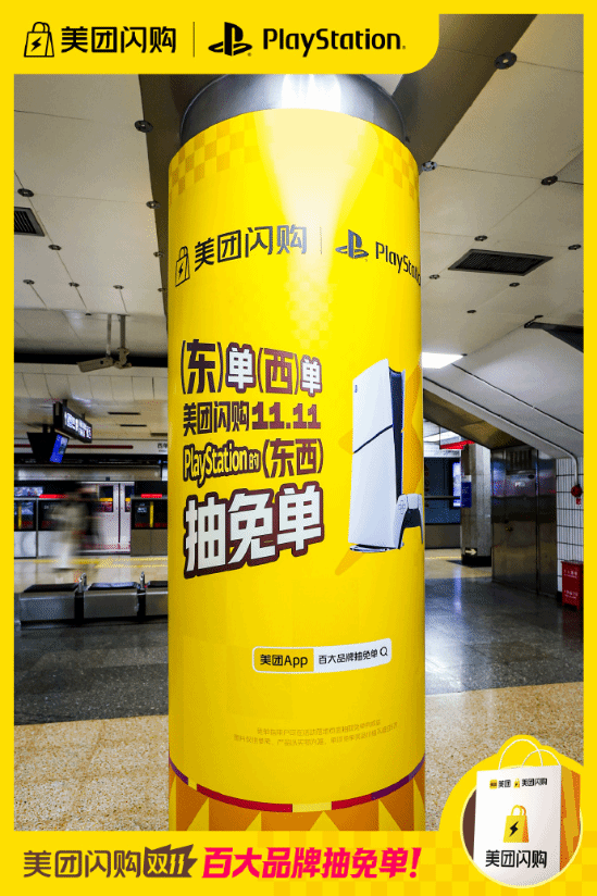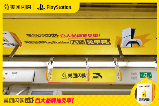 车厢内壁、站台广告栏均被游戏元素覆盖,搭配“30分钟极速达”的标语,形成沉浸式互动场景。此次合作突破传统电商模式,通过美团闪购的本地化配送网络,实现主机、游戏、周边商品“30分钟到家”服务。活动期间,用户购买PlayStation产品可享叠加优惠,部分城市还推出“游戏主题外卖盒”