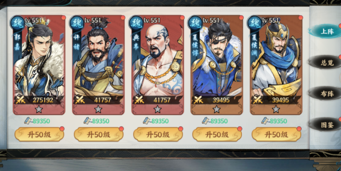 首先,前三个武将都有“寒冰”效果,能够让敌人的攻击有效降低。这个效果能让他们在打仗的时候少吃一些伤害。郭嘉就能够对那些被“寒冰”控制的敌人有很好的冷冻效果。他还可通过技能将敌人控制,让他们处于不动的状态。典韦就是主要的输出,在敌人被“寒冰”控制的时候,他的技能还可以触发额外的伤害,加上许褚和夏侯渊这些武将,伤害就完全加倍了。