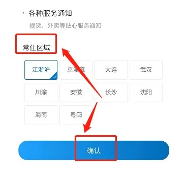 进入设置常住区域界面,选择常住区域,点击【确认】