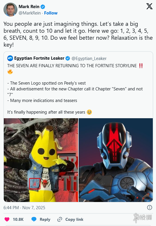 此前,有爆料者在游戏文件中发现多个与“Seven”相关的词条,莱恩在X平台转发回应时幽默调侃:“诸位纯粹是想多了。”还带着大家一同“深呼吸,数到十放下执念”,趣味互动引发玩家热议。
