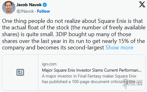 针对主要股东近期对史克威尔艾尼克斯(SE)管理层提出的质疑,公司前业务总监、现任Genvid首席执行官雅各布·纳沃克表示,这些感到不满的投资者实际上是在为这家《最终幻想》开发商着想,希望它能重回巅峰状态。
