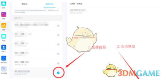 7.最后选择要恢复的便签,点击右下角的恢复就可以了