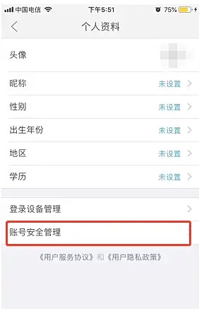 3、点击【账号安全管理】进入