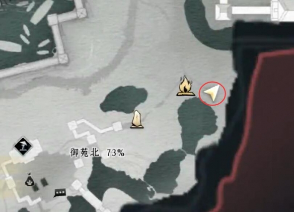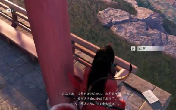 3、在边缘有一个道具【文章】直接捡起来回到【御林苑】;