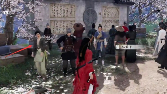 1、来到【御林苑】往左边走靠近放榜台对话【伍娘子】;