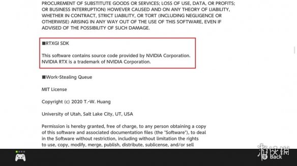 该信息源于ResetERA论坛中玩家分享的一张截图,内容为游戏在Switch2系统菜单中的许可说明文件,其中明确标注了“RTXGI SDK”。RTXGI是英伟达推出的光线追踪全局光照软件开发工具包,这一发现暗示该竞速游戏可能以某种形式采用了实时光线追踪全局光照技术。