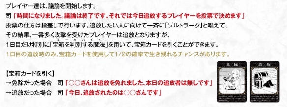 游戏设定为人类阵营中潜藏着能用言语欺骗众人的魔族,玩家需找出他们,并利用芙莉莲研究并普及的魔族“杀人魔法”将其放逐。游戏中还设有“宝箱判别魔法”机制,若能成功识破“宝箱怪”陷阱,即可保住性命继续参与。
