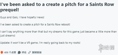 斯托克曼将此次机遇称为"梦想成真",并强调他构思的是一部前传作品——更像是《黑道圣徒0》而非正统续作。"我对这部前传有着清晰的愿景,"他表示初代开发经历是支撑其创作信心的关键。鉴于其工作室自2014年起持续开发VR作品,有玩家担忧新作将采用虚拟现实模式,斯托克曼明确表态若项目推进,绝不会是VR游戏。