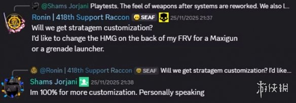 在Discord讨论中,有玩家询问未来是否可能实现战术装备自定义,提出"希望将快速侦察车后舱的重机枪替换为加特林或榴弹发射器"。乔贾尼对此回应:"就个人而言,我百分百支持更多自定义选项。"当然,这并不代表战术装备自定义功能会立即实装,但至少表明开发团队已关注该需求且CEO持赞同态度。不过乔贾尼特意强调该观点仅代表个人立场,这为功能落地增添了些许不确定性——其想法未必反映工作室的整体规划。