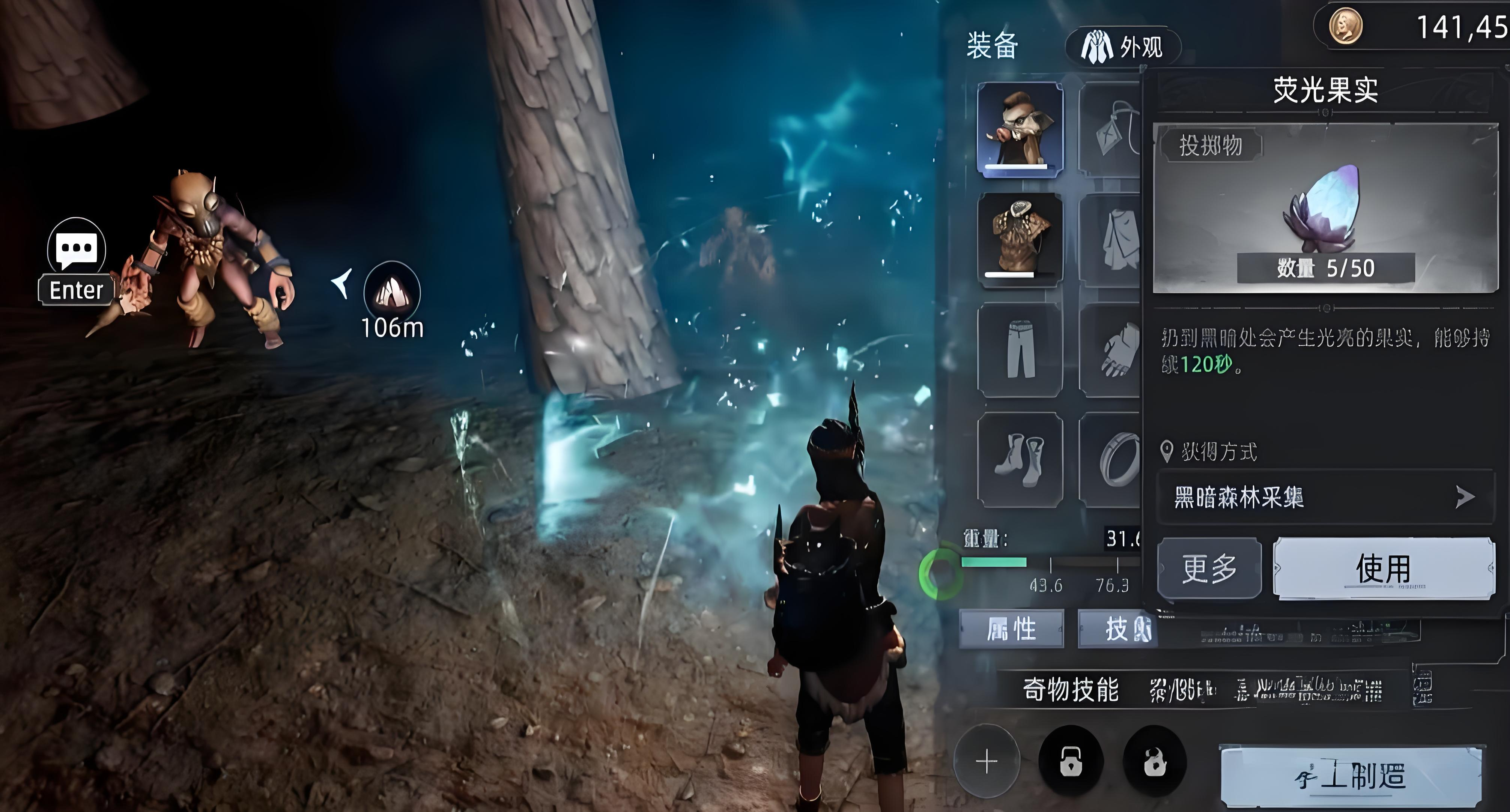 黑暗森林是一张长期处于黑夜中的地图,哪怕是玩家选择白天进去,可等你到了地图中也会处于黑暗的状态,黑暗的状态探索森林会容易出现方向缺失的情况,尤其是在看不清楚周围环境的情况下,在遇到黑暗生物的攻击就很容易受伤,严重时还会直接被黑暗生物给杀死,为了不使自己受伤,大家在探索黑暗森林时一定要提前把照明设施准备好,比如说火把或者时荧光果实,这样黑暗的环境就会变得亮起来,也不用担心在迷失方向了。
