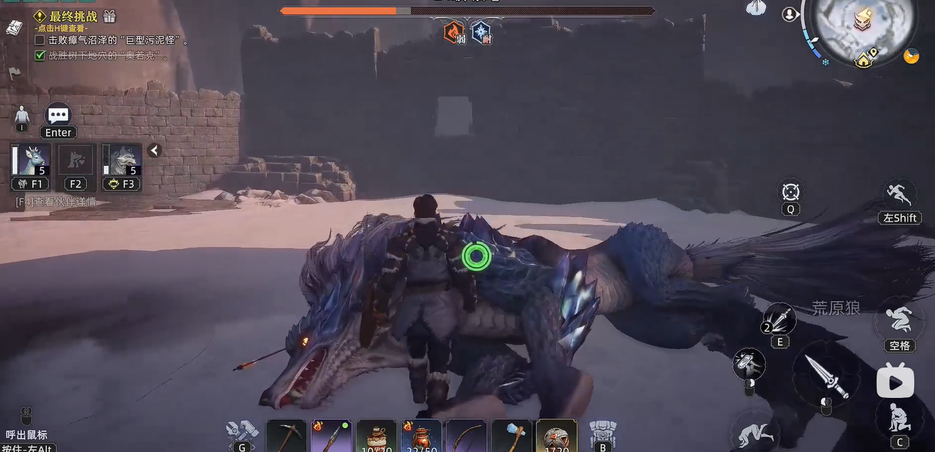 团队成员应该携带具备火属性的武器并且在恢复药剂的加持下及时的恢复体力和战斗力,防止因战斗力不足而造成的惨败局面。银鬓在发起进攻时总能够随时变化它的位置,玩家需要控制好角色灵敏的躲避他所有的攻击。击败银鬃就能获得暗夜之影和强化性的材料银色鬃毛,而暗夜之影则具有更高的战斗属性,同敌人作战时可提升冰霜的伤害。获得这个动物伙伴就相当于有了一个强力的野外生存帮手,也可为自身带来武力加成。