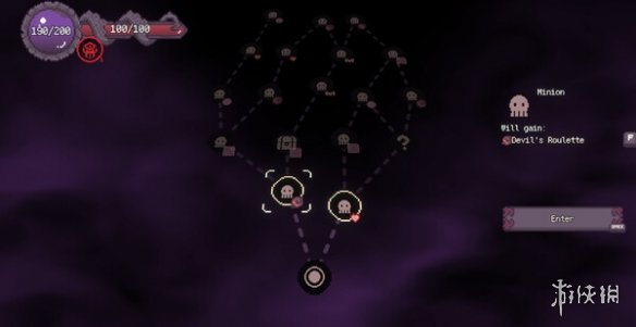 咒印链接是一个roguelike游戏,道具之间可以相互链接形成连锁反应,道具还可以通过摆放成特定阵型形成咒印,获得特殊效果。