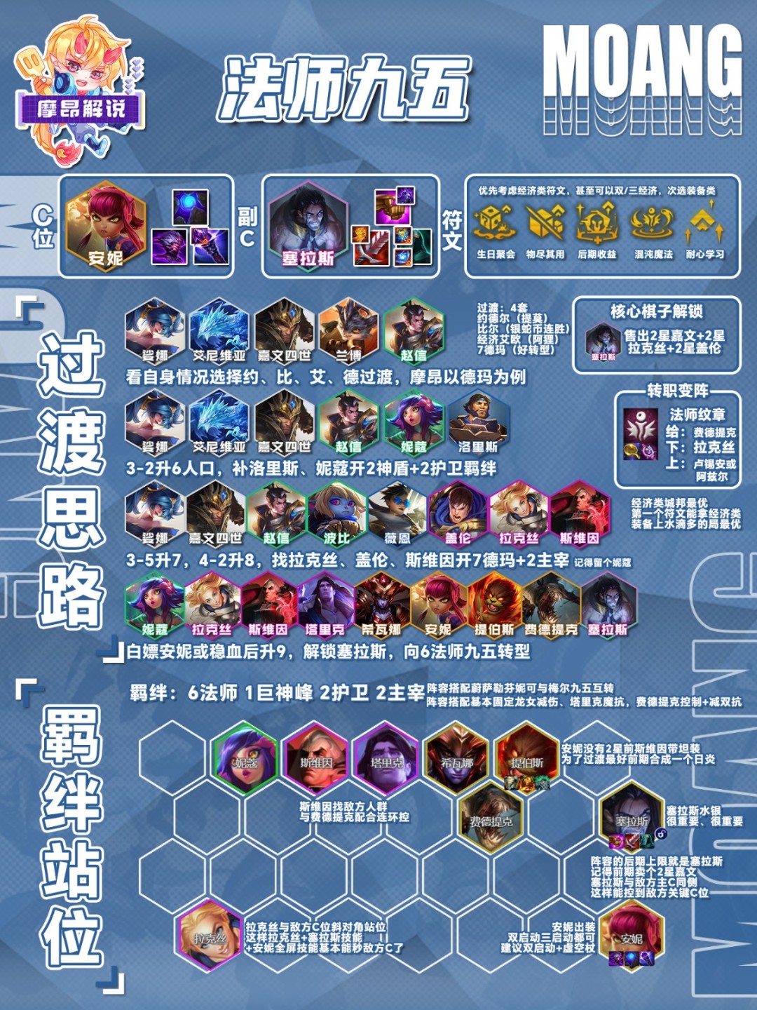 云顶之弈 S16版本 英雄联盟 传奇主题,在新赛季会增加很多新的羁绊和棋子,还有不少老羁绊,老英雄的回归,那么有不少小伙伴好奇新赛季有什么强力阵容,下面就给大家带来s16法师九五阵容推荐。