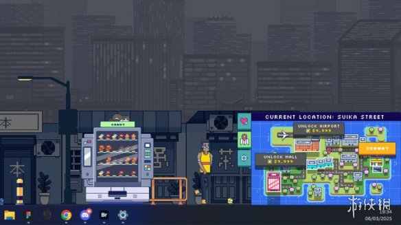 本作是一款面向“效率至上的达人”的像素风放置游戏,在桌面屏幕的一角建立起自动售货机帝国。玩家只需安装自动售货机、补充商品、设置价格即可。优点在于可以随时摸鱼或者看视频的时候挂着。
