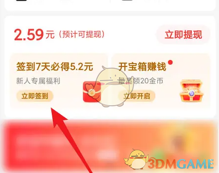 2、打开“我的”界面后,点击“立即签到”按钮,如图所示