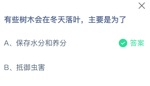 以上就是有些树木会在冬天落叶,主要是为了,支付宝蚂蚁庄园2025年12月4日答案最新,更多精彩内容,请点击关注39闲玩网更新!