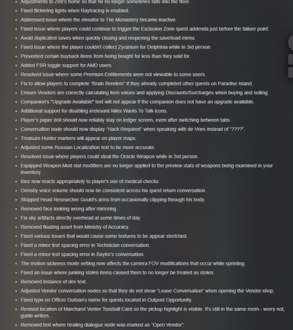 Steam会在你下次启动客户端时自动下载这个更新。你可以在下方找到它的完整更新日志。请注意,其中包含一些剧透。正如我所说,它也非常庞大,玩家们可以前往更新日志查看此次更新具体内容。