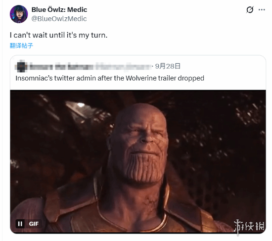 据外媒comicbook报道,圣莫尼卡工作室的社区经理@BlueOwlzMedic日前在社交平台X上发布了一条耐人寻味的引推,推文引用了关于失眠组在《漫威金刚狼》预告片发布后如释重负的梗图,表示:“已经等不及轮到我们上场了。”@BlueOwlzMedic的这句话立刻引发了关注,一些玩家认为圣莫尼卡工作室正在筹备新作的宣发工作,《战神》新作可能很快就会被公开。