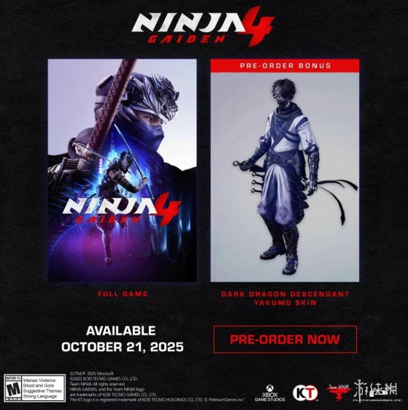 终极忍者动作冒险游戏系列《忍者龙剑传》的刺激高速动作强势回归。由白金工作室和Team NINJA共同开发制作的《忍者龙剑传4》已经开启预购。目前可购买版本分为标准版和豪华版两种。即日起预购可获得角色皮肤等多种奖励。