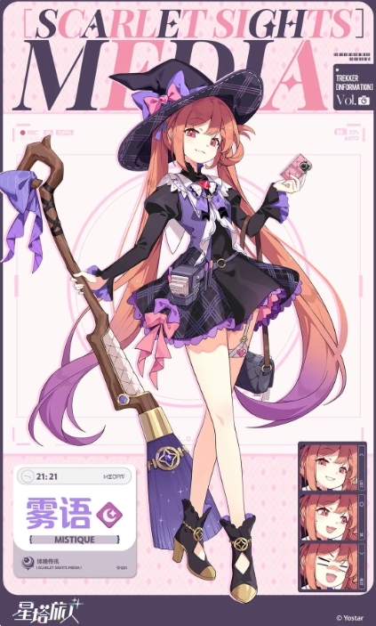 雾语目前在游戏当中带来的稀有属性是比较少见的,达到了五星级的品质,而且是属于暗元素类型的角色,所以用雾语的话,搭配同类属性就可以触发一些暗系的羁绊效果,目前用她放在阵容里面,建议是作为一个远程的魔法输出角色使用,她在魔法技能上面有足够的伤害输出能力,普攻叫做彗星连锁,使用这个技能进攻的时候,雾语会利用自己手中的扫把作为武器,对敌人进行攻击的同时,带来的是4次的连续输出方式,此时造成的攻击效果是根据她的属性,也就是暗系带来的此类属性伤害。