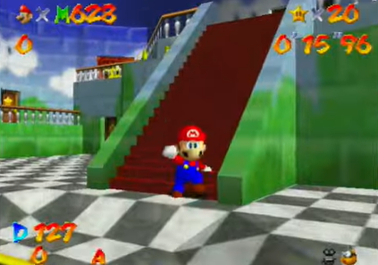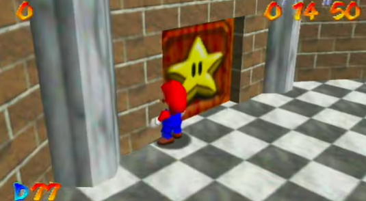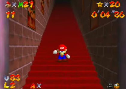 在多数《超级马里奥64》速通路线中,玩家都需要运用名为"反向长跳"的技巧:通过在斜坡反复跳跃积累近乎无限的速度,用以突破需要特定星星数量的门禁。尤其在"1星速通"这类极限挑战中,玩家必须借助"侧向反向长跳"突破城堡地下室的30星之门——蒙眼速通传奇Bubzia坦言这是"全游戏最难技巧",其精度要求之高甚至让顶尖玩家都难以稳定发挥,对新手更成为难以逾越的屏障。