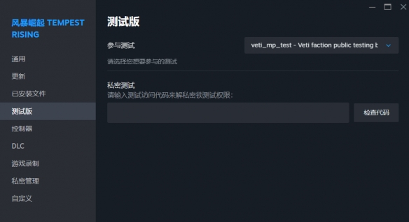 右键游戏 → 属性 →测试版 → 参与测试 → 选择 veti_mp_test