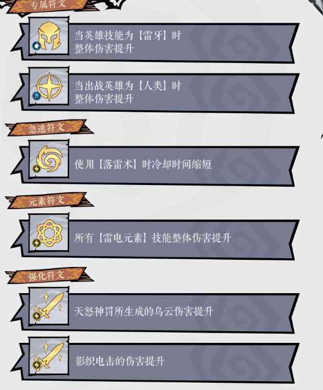 技能配置依阶段调整:前期推荐“夜影穿爆”,专注AOE范围伤害与清图效率;成型后切换至“暗影流星-影织电击”,专精雷电元素增伤。威能选择初期可用火焰喷射器、神罚或烈焰烙印过渡,后期统一转向“决斗”,兼顾BOSS战单体输出与生存韧性提升。主宰技首选“落雷术·雷暴领域”,为竞速场景必备;守护技推荐“圣光庇护力场·流光”,强化持续作战稳定性。