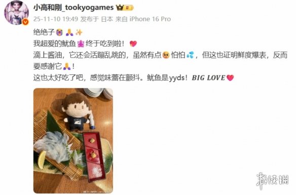 近日,知名游戏制作人小高和刚通过微博分享了品尝酱油鱿鱼的体验。由于其文案中频繁使用“绝绝子”、“yyds”等国内网络热词,引得不少网友调侃:“文案哪偷得?”“被顶号了”