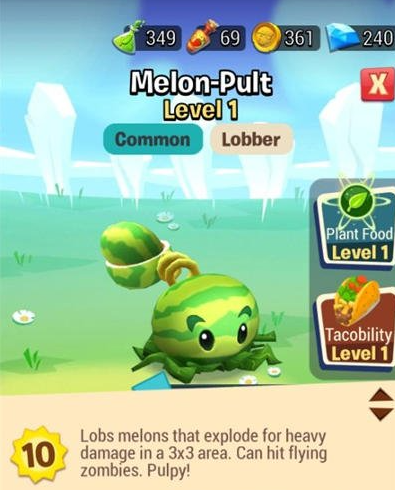 西瓜投手主要的厉害之处就在于可以造成范围性的伤害。扔出去的西瓜一旦在砸中目标之后,那就可以直接覆盖一个3×3的区域。不管是一群僵尸挤在那边还是单个的僵尸,全部都可以轻松的应对,基本上一次性攻击就可以消灭大部分的僵尸效率还是比较高的。也有一些人就会比较关注阳光的成本,基本上种植一个也只需要10点阳光。要知道在游戏中阳光的积累并不算很快,10点的成本还是很亲民的,一开始就可以去种植。