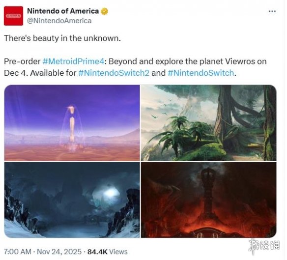 就在刚刚,任天堂发推分享了新的《 银河战士Prime4 》场景画面,并配文:“未知之中自有其美。”该游戏将于2025年12月4日在Switch 2和Switch1上推出。