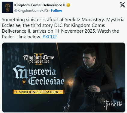 历经等待,《天国拯救2》终于宣布第三部也是最后一部DLC《教会秘辛》将于2025年11月11日上线,这一日期比预期提前不少。该消息通过游戏官方X账号的预告片及推文同步公布。